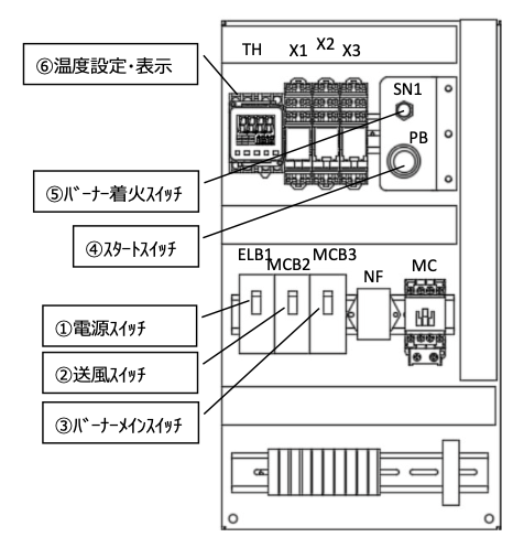 1の主幹スイッチをONにした後、スタートボタンを押すとバーナー内の送風機が自動で 動きます。